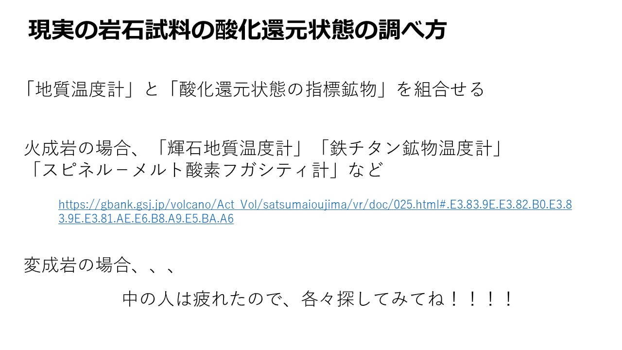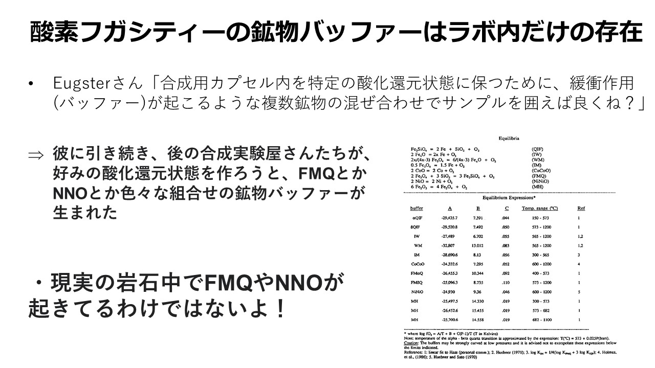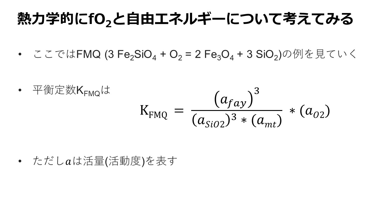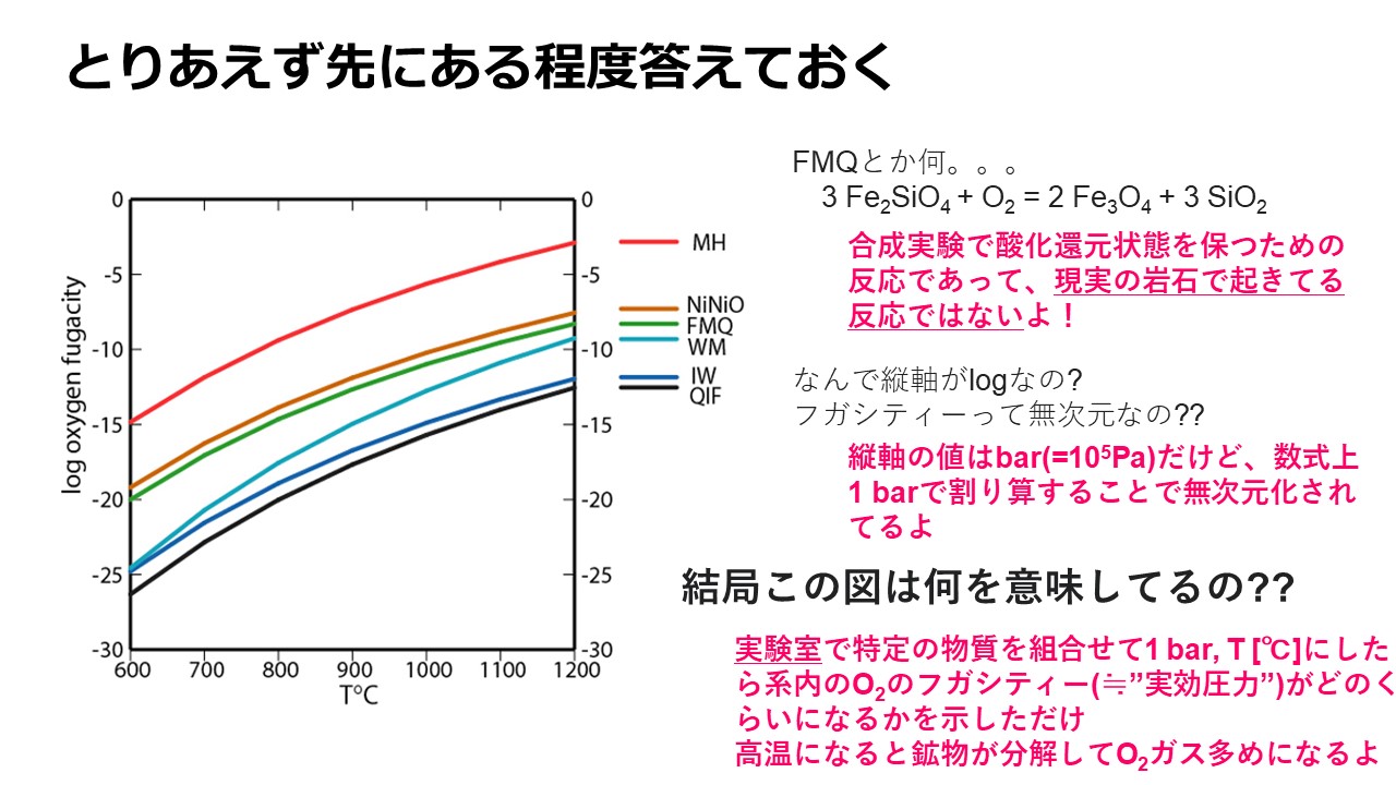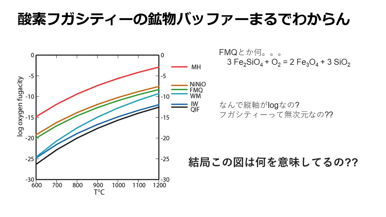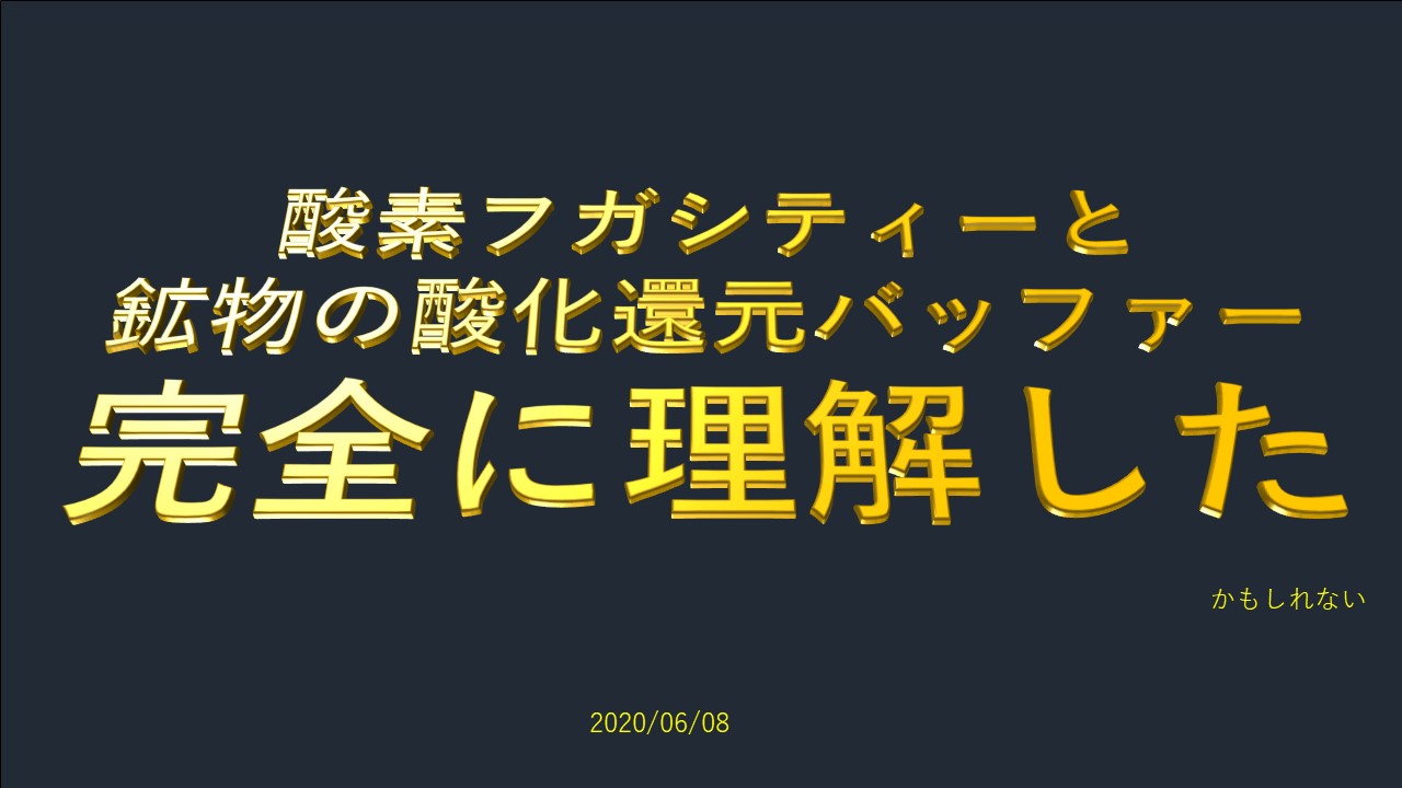 酸素フガシティーと鉱物の酸化還元バッファー、いままでまるでなんだかわかってなかったので、唐突に勉強してみた。 2020年6月8日時点での理解のまとめをなるべく数式とか使わずにまとめてみました。 途中でスライド作りに力尽きててごめんなさい。