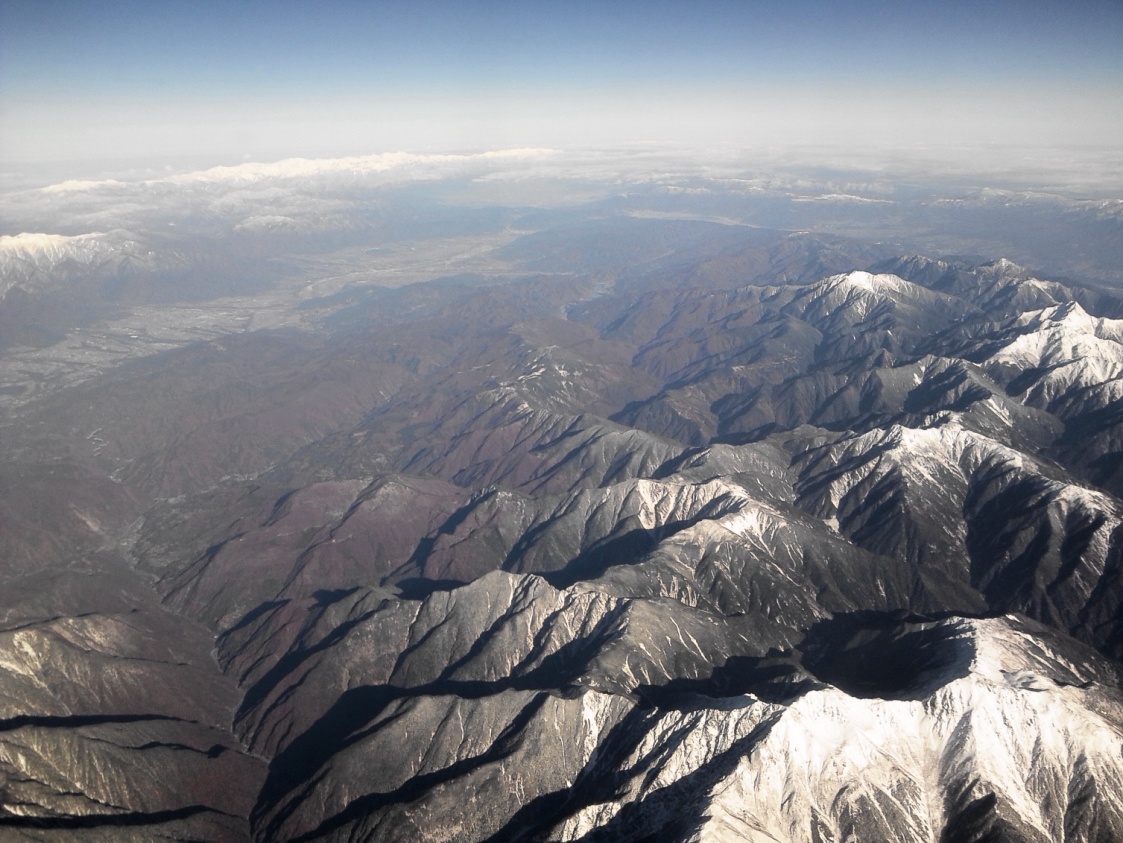 明治時代、日本の開国直後に地質学者のナウマンはこの光景を見て、フォッサマグナを唱えたというが、やはり彼は天才だったのだろう、この地域に来るたびに毎回思うことであるが、今回上空から見て感動することで、あらためてこの構造線について、印象に刻まれた。